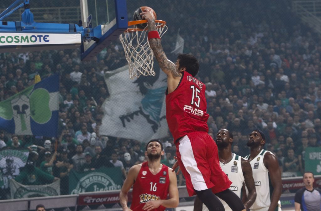 Ο Τσάβι Πασκουάλ ανακάτεψε την τράπουλα, έδωσε νωρίς χρόνο στον Λεκαβίτσιους, αναζήτησε λύσεις, καθώς είχε πρόβλημα στα σουτ (2/12 εντός πεδιάς στο πρώτο δεκάλεπτο), αλλά και στα ριμπάουντ (8-13 με τον Ολυμπιακό να μετράει τέσσερα επιθετικά). Ο Παναθηναϊκός έδειχνε να βρίσκει ρυθμό σταδιακά, για να μετατρέψει το 15-25 (12’40’’) , 20-25 (14’) με τον Ίαν Βουγιούκα και να μειώνει ως τους δύο πόντους (26-28, 17’50’’) την ώρα που ο Νίκολα Μιλουτίνοφ χρεωνόταν και αυτός με τρίτο φάουλ. Απέναντι στον Γκστ ο Σφαιρόπουλος επιστράτευσε τον Πρίντεζη να παίξει στη θέση πέντε, ενώ για πρώτη φορά στον αγώνα, λίγο πριν συμπληρωθεί το εικοσάλεπτο, χρησιμοποίησε μαζί Σπανούλη και Στρέλνιεκς. Ένα πρώτο εικοσάλεπτο το οποίο έκλεισε με συνεργασία Καλάθη – Γκιστ, η οποία λειτούργησε για πρώτη φορά στο παιχνίδι φέρνοντας και αποτέλεσμα (30-32).