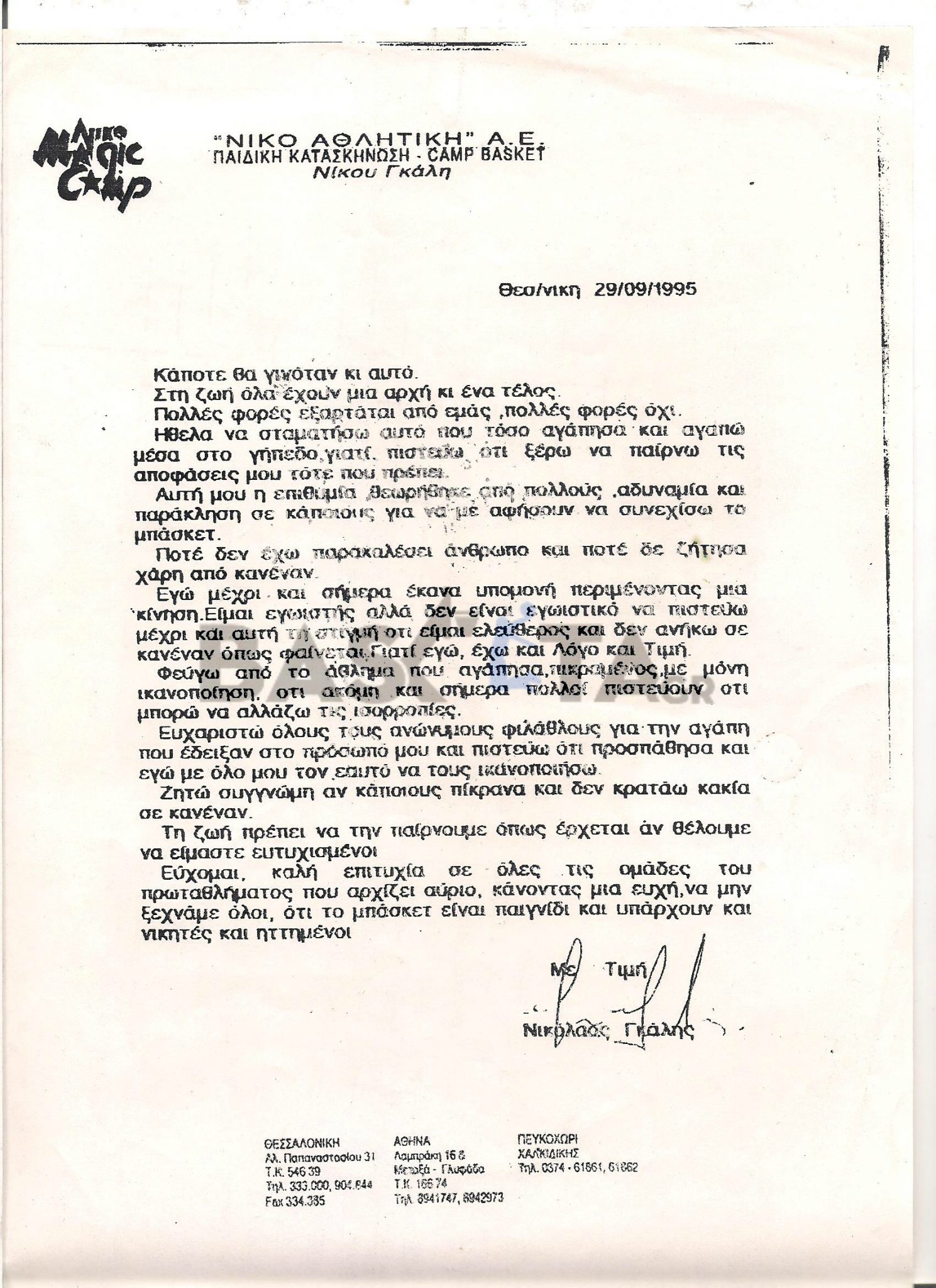Η επιστολή με την οποία έκανε ο Νίκος Γκάλης γνωστή την απόφαση του να αποχωρήσει από τα γήπεδα, δόθηκε στη δημοσιότητα σαν σήμερα λοιπόν, πριν από 24 χρόνια...