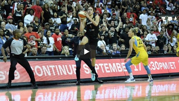 Για την ακρίβεια και ενώ η ομάδα της από το Λας Βέγκας βρισκόταν πίσω στο σκορ με 92-90 τότε σαν από μηχανής θεός εμφανίστηκε η 25χρονη παίκτρια η οποία έκλεψε την μπάλα και κάνοντας μόλις μία ντρίμπλα σηκώθηκε από τα εννιά μέτρα και πέτυχε ένα απίστευτο καλάθι.