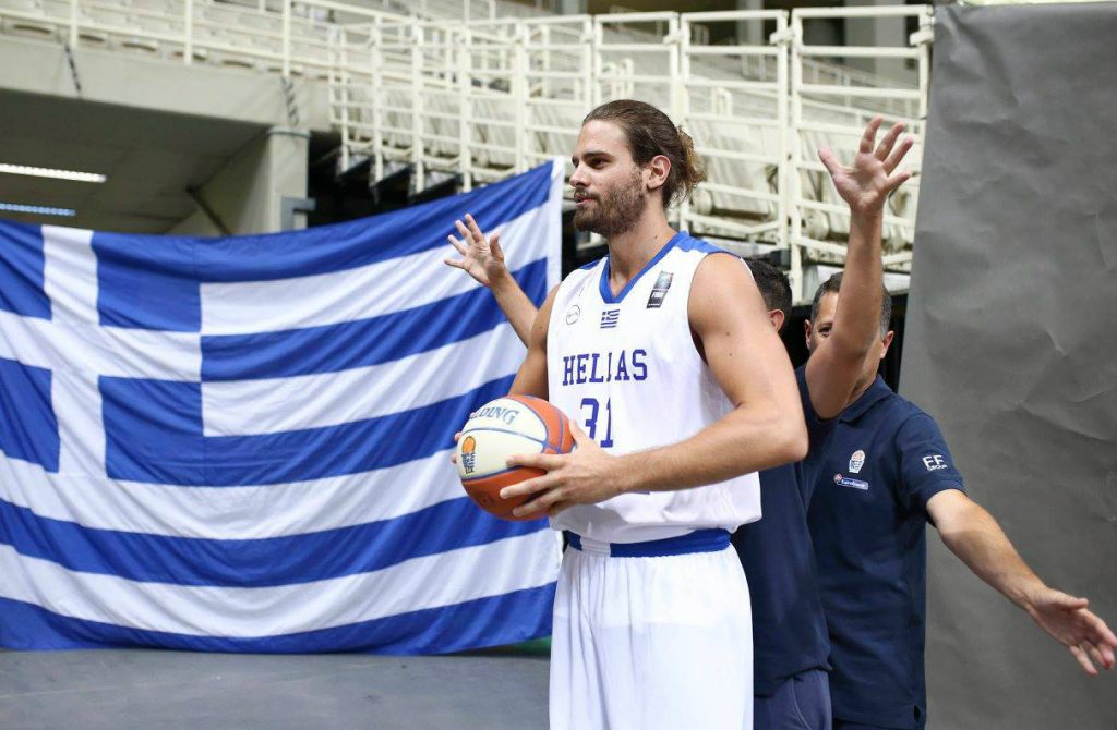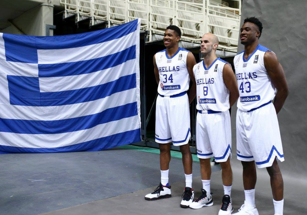 Η Εθνική Ανδρών φωτογραφήθηκε για τις ανάγκες του Ευρωμπάσκετ στο ΟΑΚΑ με τους διεθνείς να ποζάρουν στον φακό με φόντο την ελληνική σημαία.