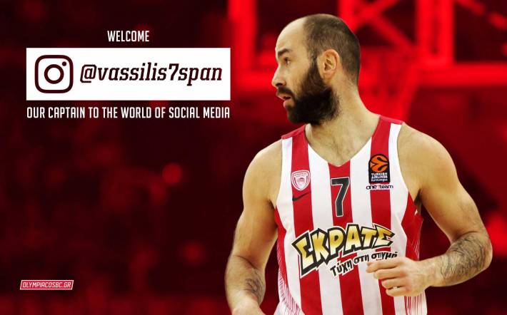 Ενός μόνο παίκτη μας η προσωπική του σελίδα στο Olympiacosbc.gr ήταν κενή όσον αφορά τα Social Media. Ο αρχηγός Βασίλης Σπανούλης δεν έκανε χρήση κανενός μέσου κοινωνικής δικτύωσης και πολλές φορές άνθρωποι που έχουν δημιουργήσει ψεύτικα προφίλ του αρχηγού παραπλανούσαν τον κόσμο που πίστευε ότι κάποια γραφόμενα σ’ αυτά ανήκουν στον V-Span. Ο αρχηγός δημιούργησε πριν από λίγες μέρες τον πρώτο και μοναδικό λογαριασμό του σε οποιοδήποτε μέσο κοινωνικής δικτύωσης. Το έκανε στο Instagram και η πρώτη του δημοσίευση ήταν μια φωτογραφία με την μπασκέτα στο σπίτι του που έκανε τα πρώτα του σουτ. Ο μοναδικός λοιπόν λογαριασμός σε οποιοδήποτε μέσο κοινωνικής δικτύωσης είναι ο ακόλουθος...