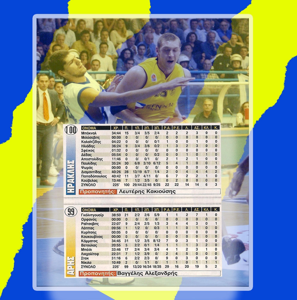 Το ντέρμπι είχε πολλούς πρωταγωνιστές αλλά μπορεί να θεωρηθεί ότι ήταν μια προσωπική μονομαχία του Γιώργου Παυλίδη με τον Νέστορα Κόμματο, αφού και οι δύο έφτασαν την 30άρα. Ο φόργουορντ του Ηρακλή είχε 30 πόντους με 6/8 βολές, 3/10 δίποντα, 6/12 τρίποντα και εννιά ριμπάουντ. Ο Κόμματος έγραψε εκείνο το βράδυ μία κορυφαία επίδοση, που παραμένει 18 χρόνια μετά, ακατάρριπτη. Ήταν εκείνη των οχτώ εύστοχων τριπόντων που είχε (σε 12 προσπάθειες) που αποτελεί ιστορικό ρεκόρ για τον Άρη στο επαγγελματικό Πρωτάθλημα. Ο «Νες» είχε ακόμη 1/2 βολές, 3/5 δίποντα και επτά ριμπάουντ.