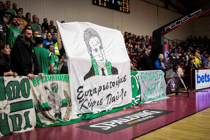 Οι φίλοι του «τριφυλλιού» πάντως σήκωσαν και πανό για τον Παύλο Γιαννακόπουλο.