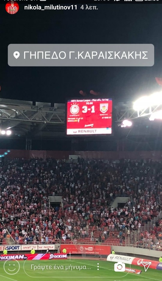 Όπως και στον προηγούμενο ευρωπαϊκό αγώνα με την Λουκέρνη, έτσι και απόψε η παρουσία του μπασκετικού Ολυμπιακού ήταν έντονη στις εξέδρες του "Γεώργιος Καραϊσκάκης". Το "παρών" έδωσαν και είδαν τον αγώνα με την Μπέρνλι (3-1) ο Νίκολα Μιλουτίνοφ, ο Γιώργος Μπόγρης, ο Βασίλης Τολιόπουλος, ο Δημήτρης Αγραβάνης. Και έκαναν και τα σχετικά ποστ...