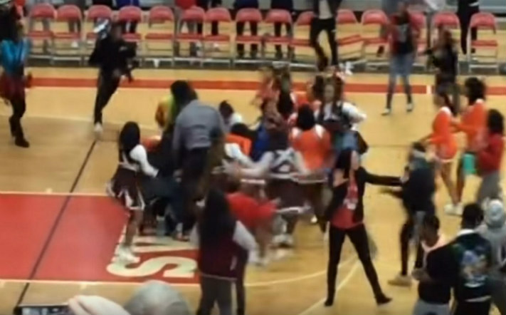 Απίστευτο ξύλο σε αγώνα μπάσκετ του γυμνασιακού πρωταθλήματος στις ΗΠΑ, με τις ομάδες των τσιρλίντερ δύο σχολείων να πιάνονται στα χέρια και να ακολουθεί χαμός.