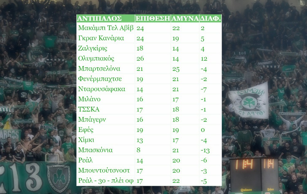 Κι όμως, στα τέσσερα πρώτα παιχνίδια του στο ΟΑΚΑ, ο Παναθηναϊκός είχε θετικό πρόσημο στην τρίτη περίοδο. Ήταν όμως, όπως αποδείχτηκε και τα τελευταία. Έτσι στο σύνολο των 16 εντός έδρας αγώνων τους, οι “πράσινοι” δέχτηκαν 25 περισσότερους πόντους από αυτούς που σημείωσαν σε αυτό το διάστημα τους (283 – 308).
