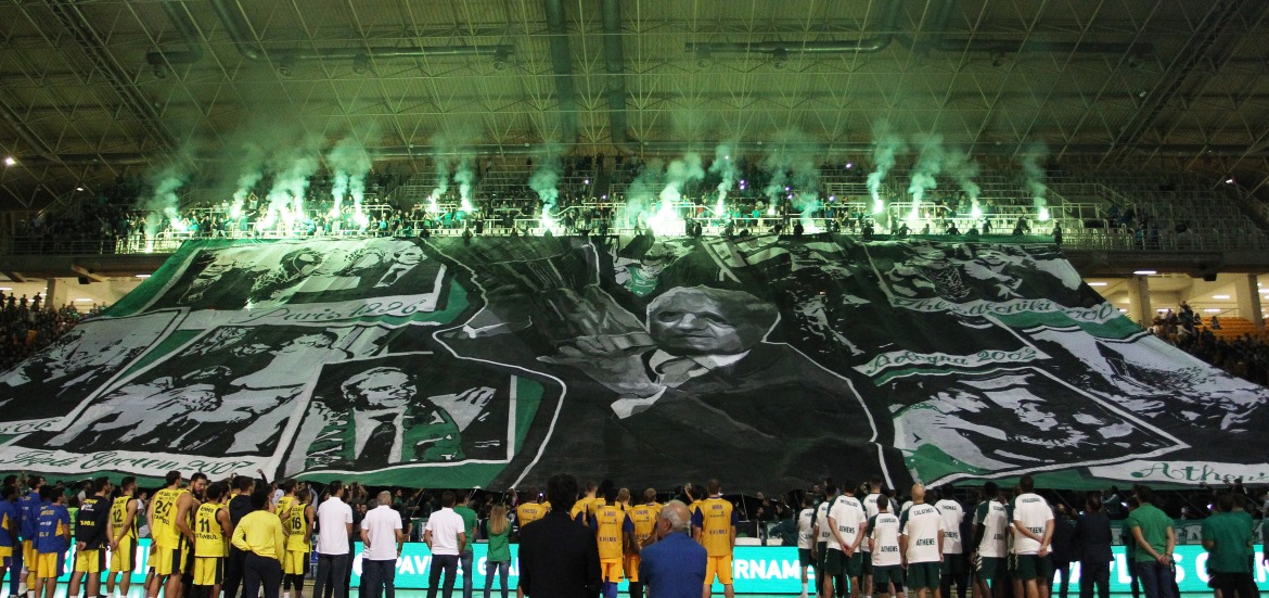 Οι φίλοι των «πράσινων» ετοίμασαν ένα ξεχωριστό coreo στο οποίο απεικονιζόταν ο αείμνηστος παράγοντας του «τριφυλλιού» να κρατάει το τρόπαιο της Ευρωλίγκας.