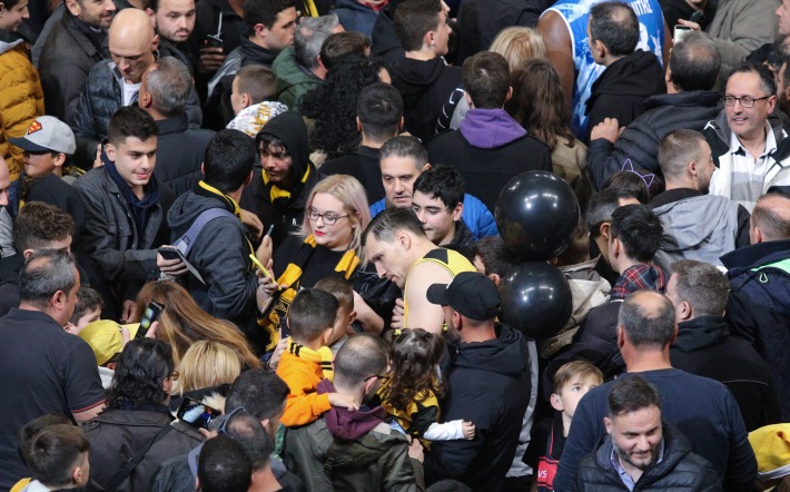 Η ΑΕΚ πήρε μια άνετη νίκη από τον Ιωνικό Νίκαιας χθες (28/12) στο ΟΑΚΑ για την Basket League και η κιτρινόμαυρη ΚΑΕ ετοίμασε την παρακάμερα της αναμέτρησης και την επίθεση αγάπης των φίλων της ομάδας στο τέλος της αναμέτρησης. Αγάπη που δεν άφησε παραπονεμένο κι έναν "αντίπαλο" τον Σοφοκλή Σχορτσανίτη!