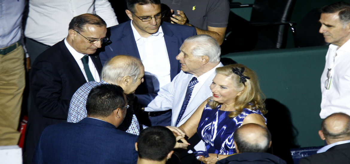 Ο Παναθηναϊκός κατέκτησε το πρωτάθλημα, έκανε το νταμπλ με τη χθεσινή του νίκη στο ΣΕΦ επί του Ολυμπιακού. Και ήρθε η ώρα της στέψης στο ΟΑΚΑ. Η φιέστα αρχίζει σε λίγα λεπτά, αλλά το πρώτο και πιο θερμό χειροκρότημα δόθηκε ήδη στον Παύλο Γιαννακόπουλο. Η είσοδός του συνοδεύτηκε με τους φίλους της ομάδας να φωνάζουν ρυθμικά το όνομά του και αυτός να τους απαντά με ένα νεύμα, πριν πάρει τη θέση του, δίπλα στη σύζυγό του, Δέσποινα, στις πολυθρόνες, δίπλα στο παρκέ.