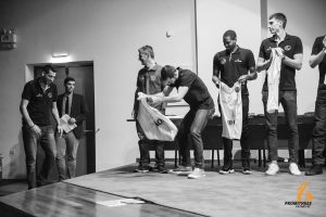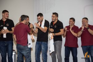 Με τον αρχιτέκτονα της ομάδας, Μάκη Γιατρά, ν' ανεβαίνει στην σκηνή, σήμανε, επιτέλους, και η ώρα των παικτών, καθώς το πρόγραμμα συνεχίστηκε με την παρουσίαση της φετινής ομάδας του Προμηθέα. Οι παίκτες ανέβηκαν, σε πανηγυρικό κλίμα, ένας-ένας και παρέλαβαν τη φανέλα με τ’ όνομά τους από τον αρχηγό της ομάδας, Νίκο Γκίκα.