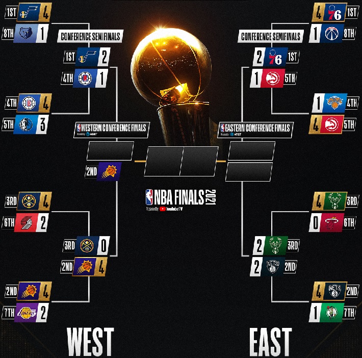 -Οι Σίξερς προηγούνται με 2-1 νίκες των Χοκς, το ίδιο και οι Τζαζ των Κλίπερς.