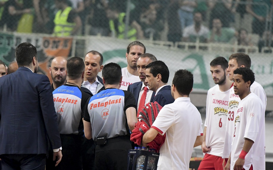 Αναφορικά με την καθυστερημένη έναρξη του δευτέρου ημιχρόνου, οι διαιτητές σημείωσαν ότι εξαιτίας μπουκαλιών με νερό που έπεσαν προς τον πάγκο του Ολυμπιακού και επειδή ξεκόλλησαν κάποιες διαφημιστικές πινακίδες, η ομάδα του Ολυμπιακού αποχώρησαν από τον αγωνιστικό χώρο. Μετά από λίγα λεπτά επέστρεψαν και ο αγώνας συνεχίστηκε και τελείωσε κανονικά.
