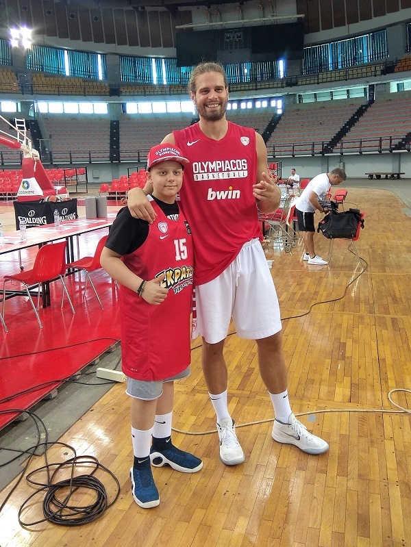 Ο Κωνσταντίνος, μαζί με τους γονείς του, πήγαν σήμερα στο ΣΕΦ, είδε μέρος της προπόνησης, φωτογραφήθηκε με τους αγαπημένους του παίκτες και πήρε και τα δικά του δώρα: Μια μπάλα και μια φανέλα με τις υπογραφές παικτών και προπονητών, καθώς και ένα καπελάκι της ομάδας.