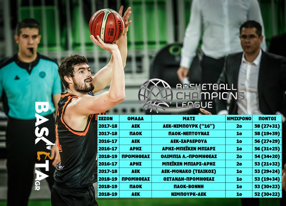 Το basketa.gr συγκέντρωσε τις κορυφαίες ελληνικές επιδόσεις ενός ημιχρόνου για την τριετία του Basketball Champions League...