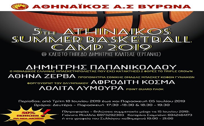 Ο Αθηναϊκός διοργανώνει για πέμπτη χρονιά το καλοκαιρινό του καμπ για κορίτσια και όπως πάντα, μεγάλες προσωπικότητες του αθλήματος θα διδάξουν τα μυστικά του αθλήματος. Το Basketa.gr σε συνεργασία με την ομάδα του Βύρωνα, προσφέρει δύο δωρεάν συμμετοχές σε τυχερούς που θα αναδειχθούν μετά από κλήρωση. Μέχρι την Πέμπτη 13/6 μπορείτε να στέλνετε δηλώσεις ενδιαφέροντος στο [email protected] με ονοματεπώνυμο και στοιχεία επικοινωνίας και την επομένη ημέρα θα ενημερωθούν οι δύο τυχεροί.