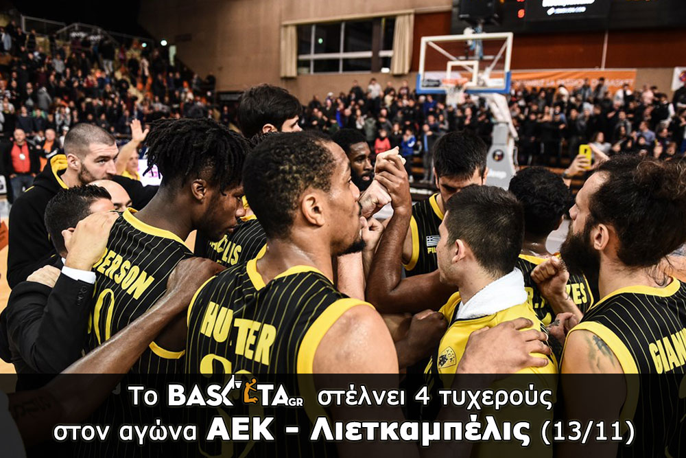 Η ΑΕΚ ετοιμάζεται για τον δεύτερο συνεχόμενο εντός έδρας αγώνα της στο BCL, με την Λιετκαμπέλις την Τρίτη 13/11 (19.30 ) και το Basketa.gr σε συνεργασία με τους διοργανωτές, συνεχίζει τις προσφορές του για εισιτήρια των εντός έδρας αγώνων των ελληνικών ομάδων.