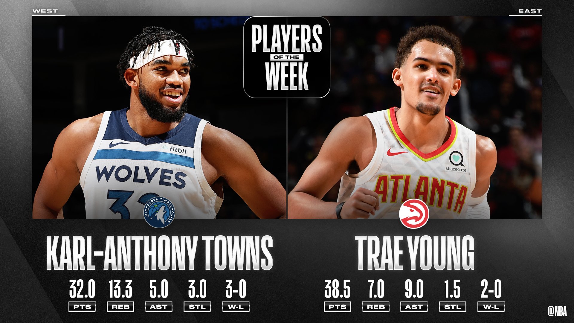 Η πρώτη εβδομάδα της μακράς σεζόν του ΝΒΑ ολοκληρώθηκε και προμήνυσε ότι θα δούμε πολλά και ενδιφέροντα πράγματα να συμβαίνουν στο παρκέ. Οι πρώτοι MVP ανακοινώθηκαν και δεν είναι άλλοι από τους Τρέι Γιανγκ των Ατλάντα Χοκς στην Ανατολή και Καρλ Άντονι Τάουνς των Μινεσότα Τίμπεργουλβς στη Δύση.