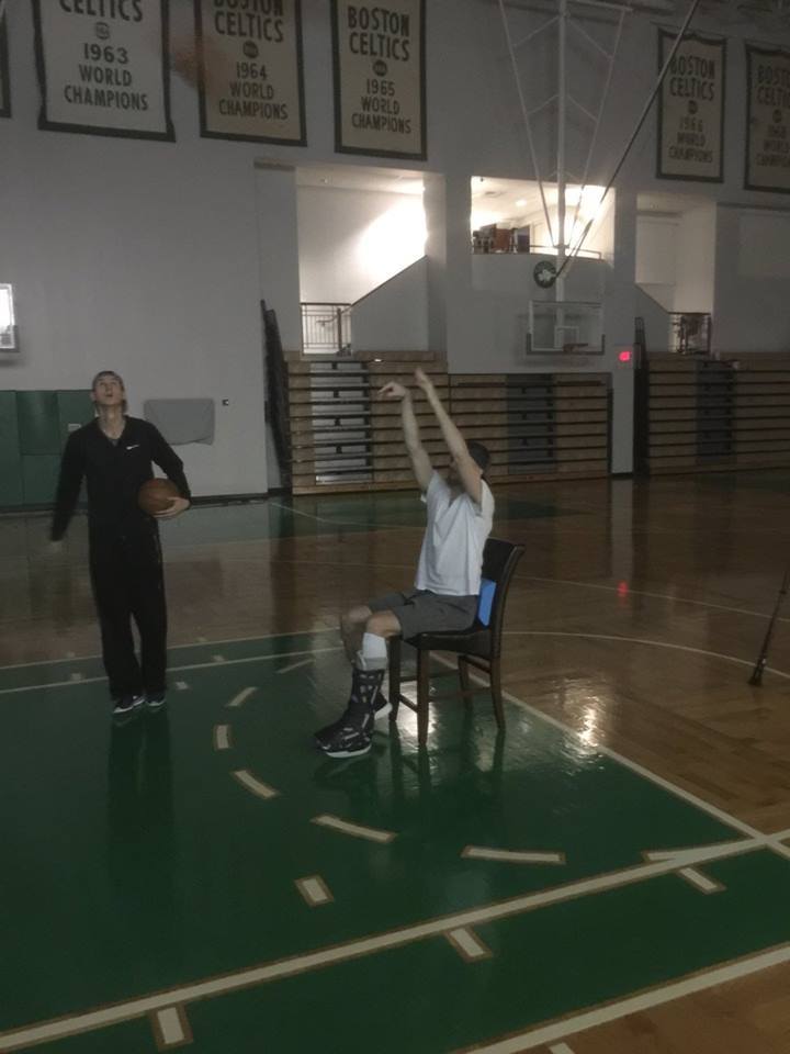 Ο ανατριχιαστικός τραυματισμός του Γκόρντον Χέιγουορντ στην πρεμιέρα της φετινής σεζόν του ΝΒΑ θα τον κρατήσει για πολύ καιρό μακριά από την κανονική δράση, όμως δεν μπορεί να του κόψει εντελώς την επαφή με το μπάσκετ. Αν θέλετε, δεν πρέπει κιόλας. Κάτι που γνωρίζει καλά και ο ίδιος ο σταρ των Μπόστον Σέλτικς, ο οποίος μέχρι να είναι σε θέση να περπατήσει ξανά, αφού προς το παρόν έχει το πόδι του σε νάρθηκα, βρήκε τον τρόπο που βλέπετε στην παρακάτω φωτό για να σουτάρει. Διότι τα χέρια του είναι μια χαρά και μπορούν να σημαδέψουν το καλάθι ακόμα και αν αυτός κάθεται σε καρέκλα...