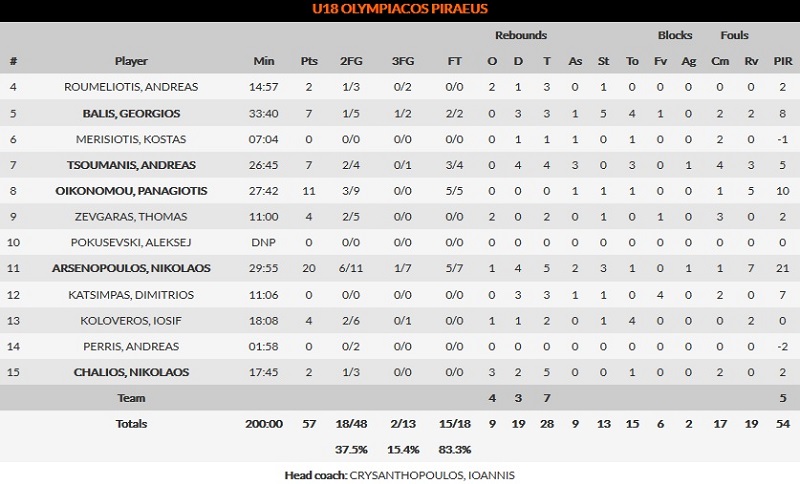 Τέταρτη θέση ο Ολυμπιακός στο U18, διάκριση για Αρσενόπουλο