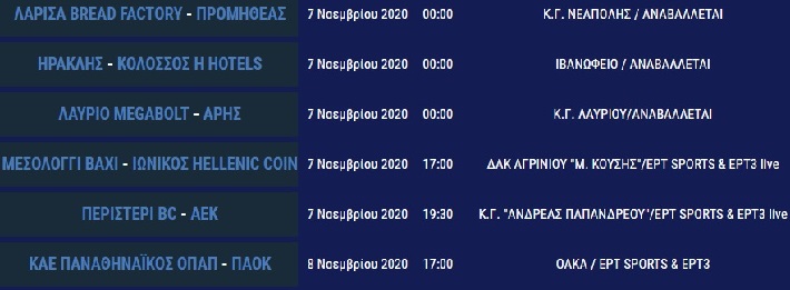 Θα διεξαχθούν σε μεταγενέστερη ημερομηνία οι αγώνες της 3ης αγωνιστικής της Basket League Λάρισα-Προμηθέας Πατρών στο κλειστό της Νεάπολης, Ηρακλής-Κολοσσός Ρόδου στο Ιβανώφειο και Λαύριο-Άρης στο κλειστό του Λαυρίου.