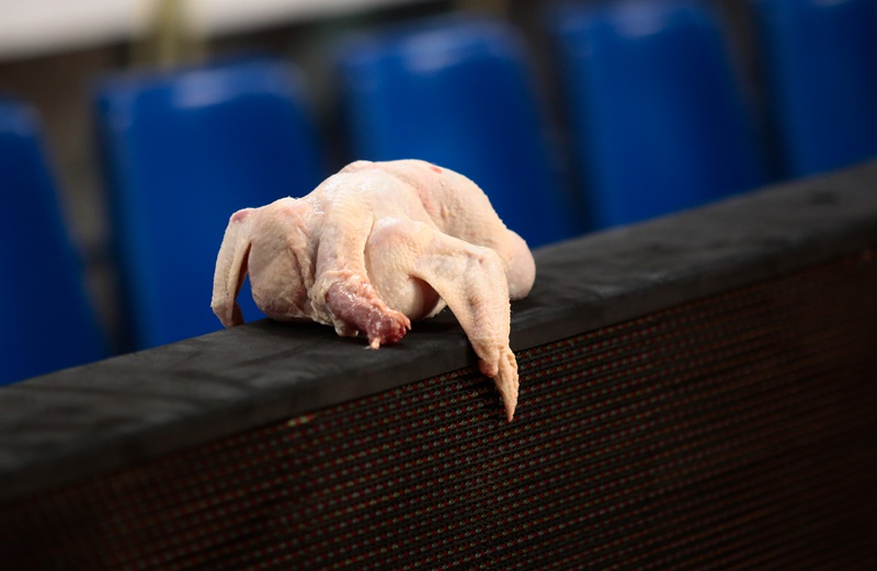 Στον πάγκο του Ολυμπιακού οι άνθρωποι του «τριφυλλιού» άφησαν κοτόπουλα, θέλοντας να τρολάρουν τους Πειραιώτες για την απόφασή τους να μην κατέβουν.