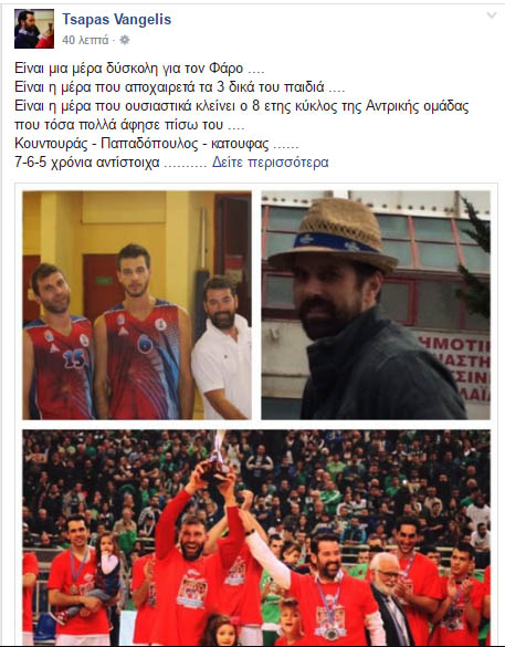 Υ.Γ . Για την αντρική ομάδα του Συλλόγου κλείνει ένας κύκλος ..... Ένας κύκλος που έκανε τον Σύλλογο γνωστό Σ όλη την μπασκετική Ελλάδα και το αντρικό του Φάρου φώτισε όλα τα υπόλοιπα τμήματα .... Στον νέο κύκλο που ανοίγει τα υπόλοιπα τμήματα παίρνουν τα σκήπτρα να φωτίσουν τον Σύλλογο .... Ελπίζω να τα καταφέρουμε σε βάθος χρόνου και Σ αυτό ....