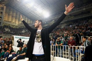 Η τελευταία παρουσία του στο ΟΑΚΑ, ως θεατής, στην αναμέτρηση με τη Φενέρμπαχτσε για τα πλέι οφ της Ευρωλίγκας το 2017…
