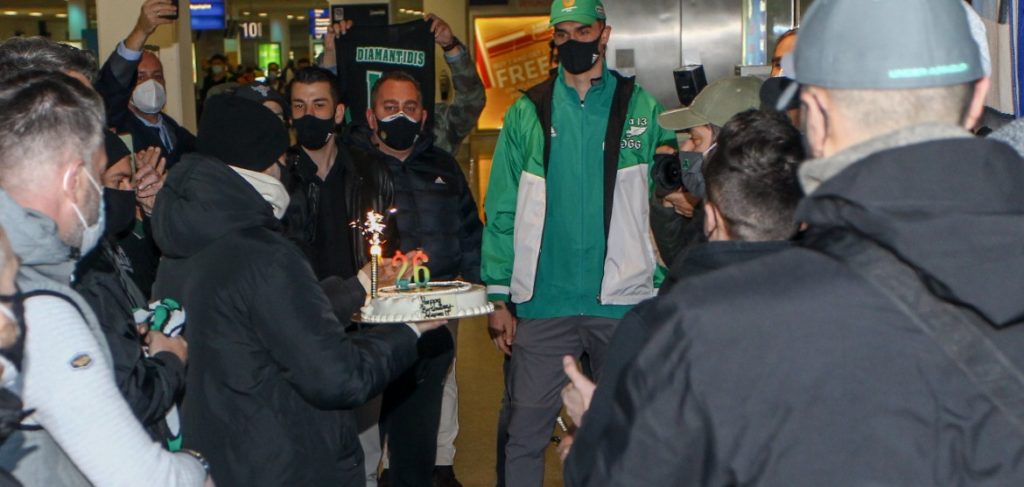 Οι οπαδοί των «πράσινων» του πρόσφεραν και μία τούρτα λόγω των γενεθλίων του, ενώ κρατούσαν κι ένα πανό το οποίο έγραφε «Super Mario», όπως είναι το παρατσούκλι του διεθνούς άσου.