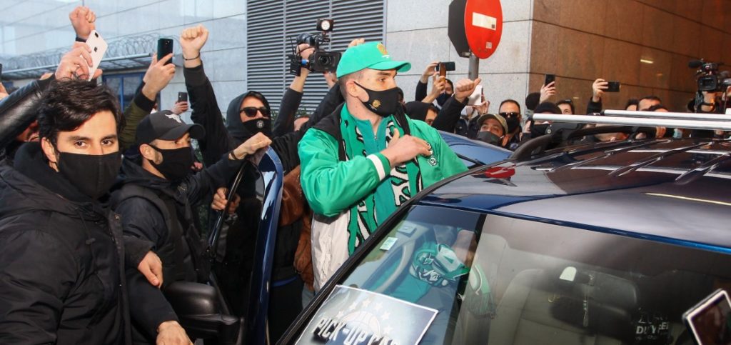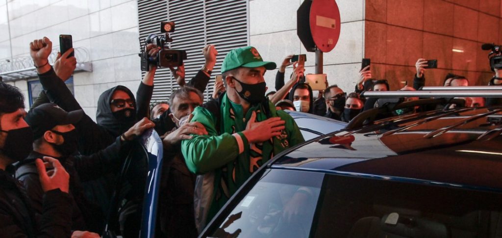 Παρά την πανδημία, περίπου 500 οπαδοί του «τριφυλλιού» βρέθηκαν στο «Ελ. Βενιζέλος» και τον αποθέωσαν, με τον ίδιο να είναι φανερά ενθουσιασμένος από αυτήν την υποδοχή.