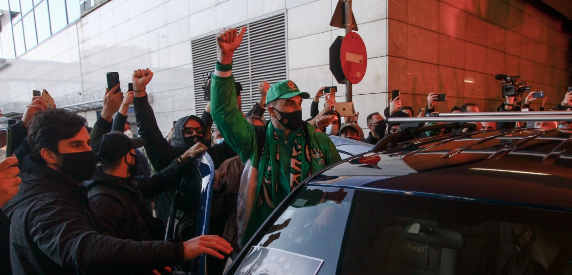 Παρά την πανδημία, περίπου 500 οπαδοί του «τριφυλλιού» βρέθηκαν στο «Ελ. Βενιζέλος» και τον αποθέωσαν, με τον ίδιο να είναι φανερά ενθουσιασμένος από αυτήν την υποδοχή.