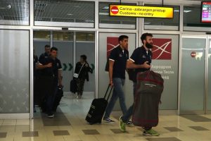 Δεύτεροι στο Βελιγράδι έφθασαν οι Λιθουανοί, με τον προπονητή τους Σαρούνας Γιασικεβίτσιους να χαμογελάει πλατιά κατά την άφιξή του στο αεροδρόμιο «Νίκολα Τέσλα»...