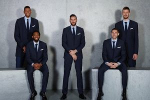 Ομοιόμορφα ντυμένοι και επίσης χαμογελαστοί και οι παίκτες της Ζαλγκίρις Κάουνας
