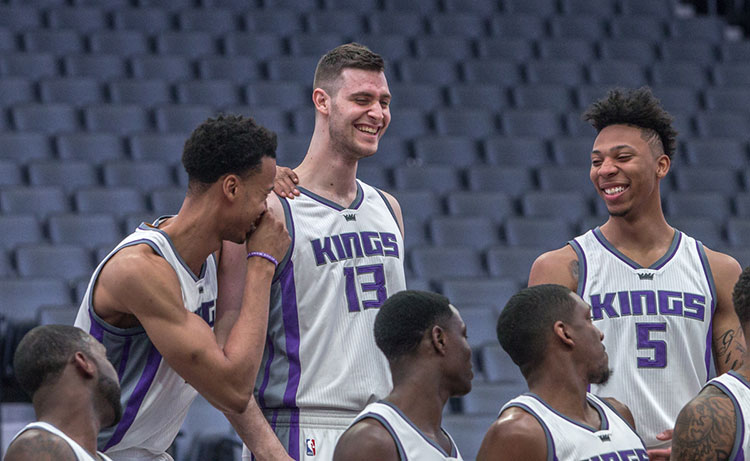 Οι Σακραμέντο Κινγκς έκαναν την ομαδική τους φωτογράφιση σήμερα και είχαν μια πολύ καλή ιδέα: Να βγάλουν μια σειρά από παρασκηνιακά "κλικ", τα οποία τις περισσότερες φορές δείχνουν καλύτερα από οτιδήποτε το καλό κλίμα που μπορεί να υπάρχει σε μια ομάδα. Και στην περίπτωση των "βασιλιάδων" αυτό βγήκε προς τα έξω με τους δύο Έλληνες παίκτες να έχουν τον δικό τους ρόλο.