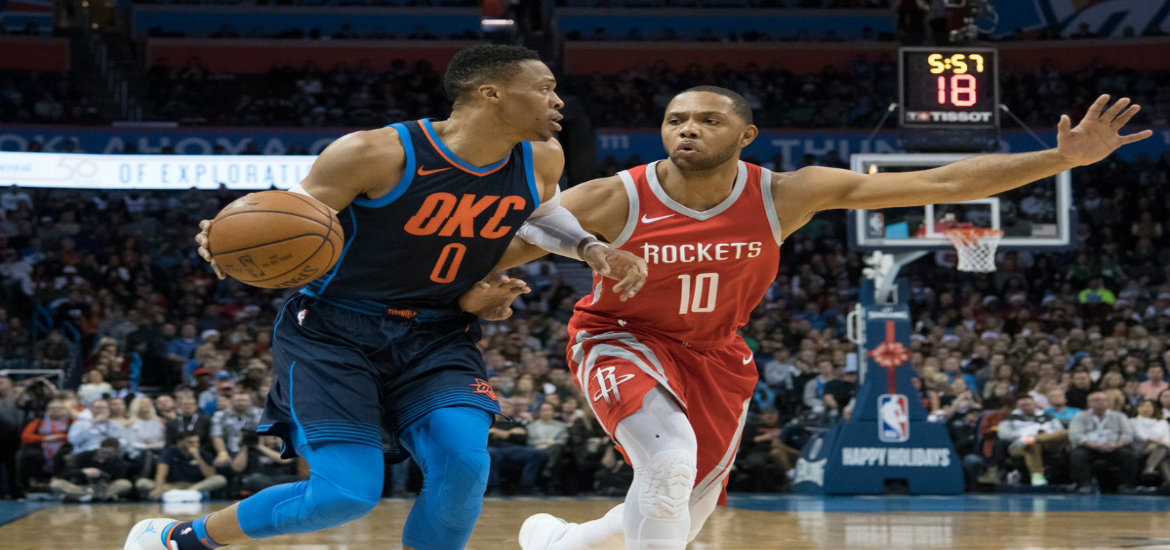Με τον Ράσελ Ουέστμπρουκ να είναι εξωπραγματικός στο δεύτερο ημίχρονο, οι Θάντερ ευχήθηκαν «Καλά Χριστούγεννα» στους φιλάθλους τους με τον καλύτερο τρόπο, κερδίζοντας τους πρωτοπόρους της Δύσης - αλλά χωρίς Πολ - Ρόκετς με 112-107 και αναγκάζοντάς τους στην έβδομη ήττα τους, όσες έχουν και οι δεύτεροι Ουόριορς, με τους παίκτες του Μπίλι Ντόνοβαν να ελπίζουν πως το τέλος του 2017 θα τους βρει πιο κοντά στην τετράδα.