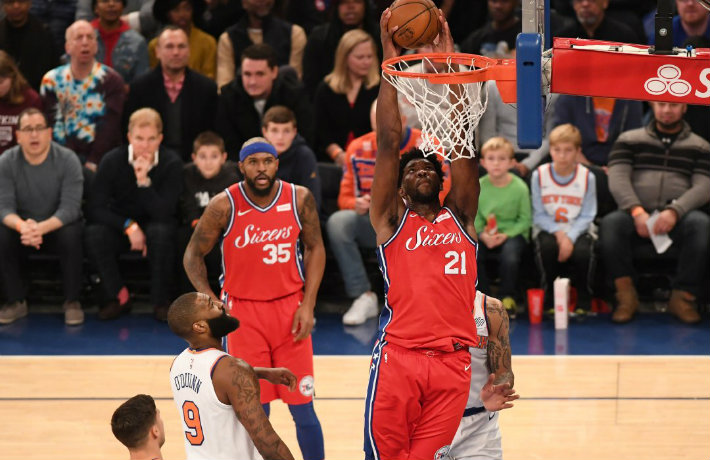 Ο Τζόελ Έμπιιντ ήταν ο νικητής στη μονομαχία του με τους ψηλούς της ομάδας από τη Νέα Υόρκη, παρά τον τρομερή εμφάνιση του Ενές Καντέρ, ο οποίος πέτυχε 31 πόντους με 7/8 βολές, 12/21 δίποντα, 22 ριμπάουντ!!!,και 1 ασίστ, μπαίνοντας σε ένα σπάνιο γκρουπ παικτών που είχαν +30 πόντους και +20 ριμπάουντ την ημέρα των Χριστουγέννων (Ουίλτ Τσαμπερλέιν, Μπιλ Ράσελ και Μπόμπ Λανιέρ).