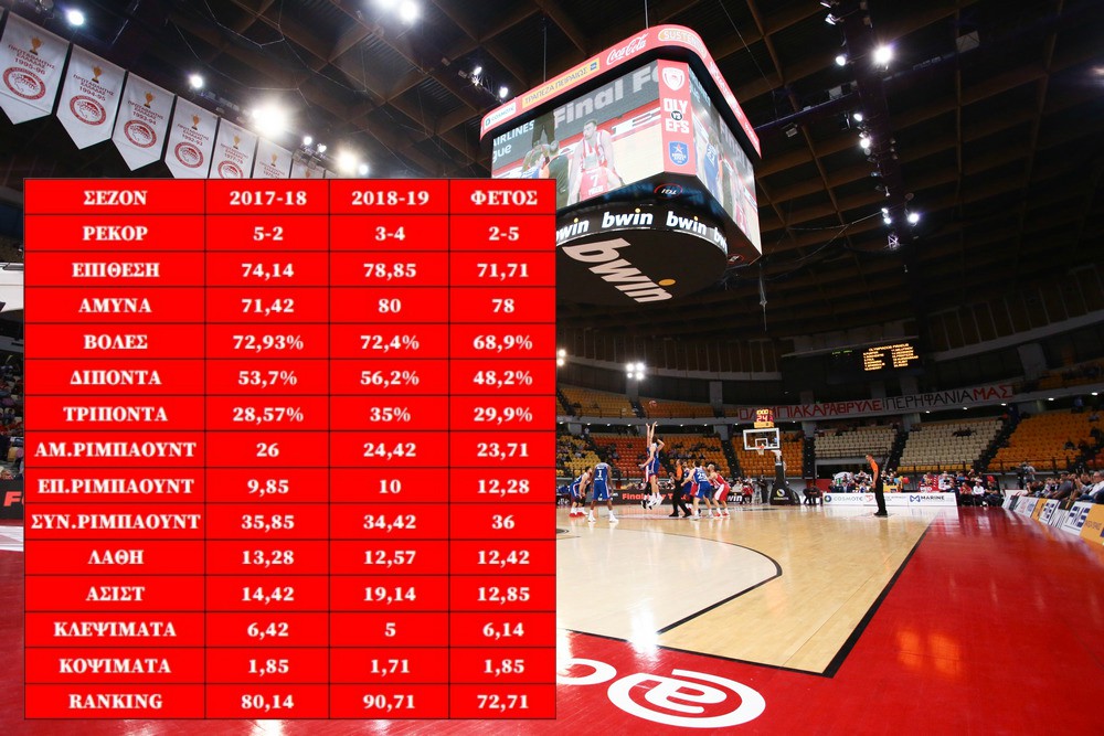 Ο χθεσινός Ολυμπιακός πέραν όλων των άλλων, είχε λιγότερα αμυντικά ριμπάουντ (20) και περισσότερα λάθη (17) από κάθε άλλο φετινό παιχνίδι του.