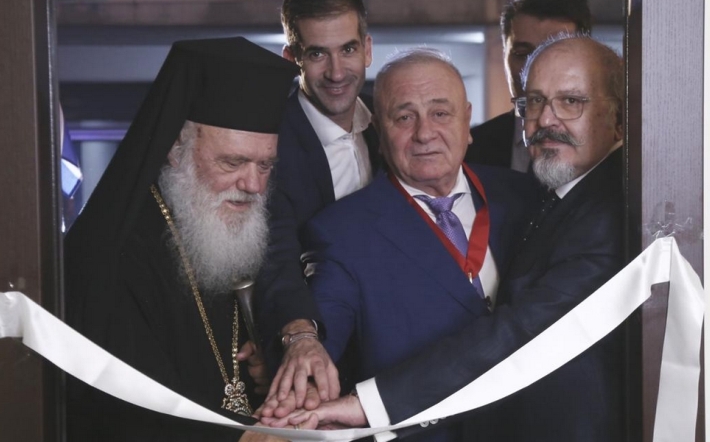 Ο σταυρός της Ιεράς Αρχιεπισκοπής Αθηνών, για την ανώτατη τιμή ευεργέτη, απονεμήθηκε στον Παντελή Μπούμπουρα από τον αρχιεπίσκοπο Ιερώνυμο.