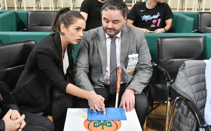 Ο εν λόγω φίλος, συνοδεύεται από μια εργοθεραπεύτρια προκειμένου να βιώσει την ατμόσφαιρα του αγώνα με την Εφές μέσω του συστήματος Braille, το οποίο είναι επίσης δώρο του συλλόγου. Ο Παναθηναϊκός ΑμεΑ κατασκεύασε σε συνεργασία με το εργαστήριο Σχεδιομελέτης και Κατεργασιών του Ελληνικού Μεσογειακού Πανεπιστημίου και την Δημόσια Κεντρική Βιβλιοθήκη Σπάρτης - Sparti TechLab απτική αναπαράσταση γηπέδου καλαθοσφαίρισης ώστε οι φίλαθλοι μας με προβλήματα όρασης να παρακολουθούν τους αγώνες της αγαπημένης μας ομάδας.