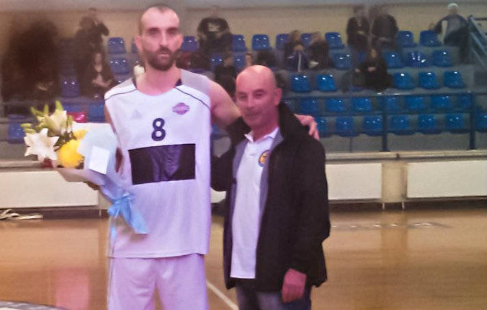 Ο έμπειρος αθλητής βοήθησε το Ίλιον να κερδίσει την άνοδο του στην Β' Εθνική, με τον υπεύθυνο δημοσίων σχέσεων της Ένωσης, Φάνη Ψαρόπουλο να τον βραβεύει.