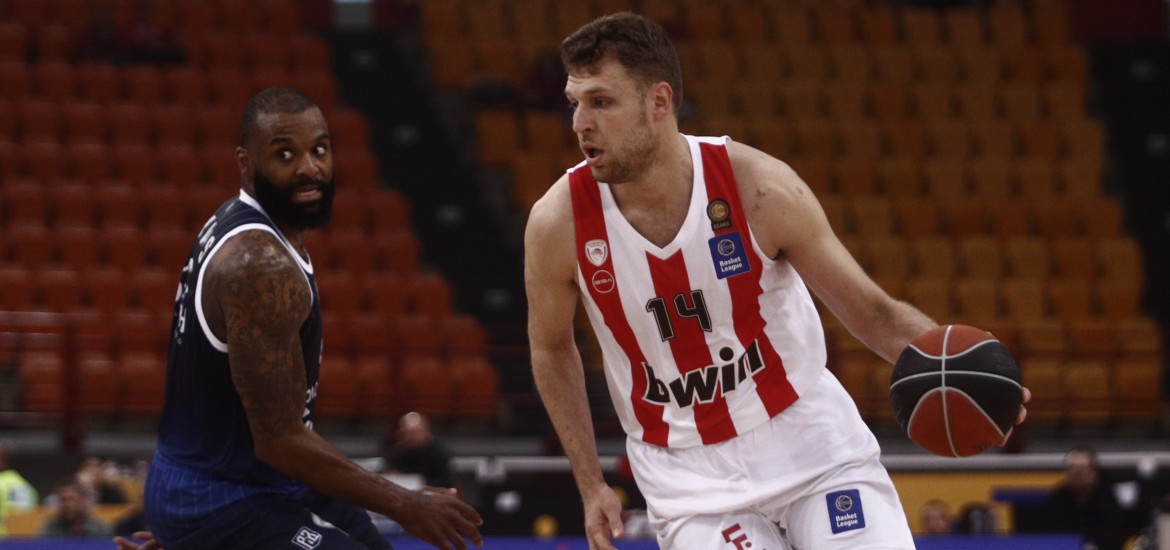 ΜΕ ΤΟ ΚΕΦΙ ΤΟΥ: Ο Γιαννούλης Λαρεντζάκης είναι ο ορισμός του ανθρώπου με ενέργεια, η οποία μπορεί να αλλάζει τα παιχνίδια του Ολυμπιακού, συνεισφέροντας εκείνος στο να φτάσει η διαφορά σε διαστάσεις θριάμβου στο τέλος με 18 πόντους, σημειώνοντας 7/10 σουτ.