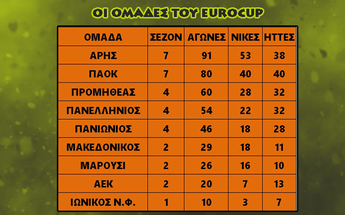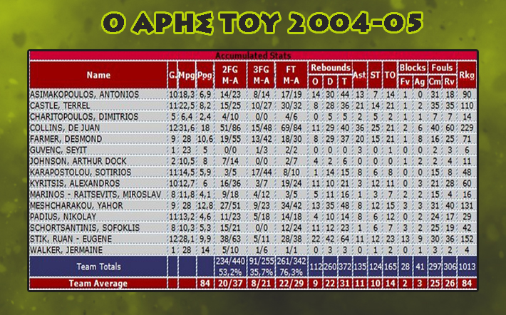 Οι αριθμοί του Άρη στο EuroCup της σεζόν 2004-05…