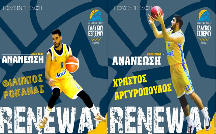 Στις δυο πρώτες ανανεώσεις του έφτασε ο Γλαύκος/Έσπερος, κρατώντας στο δυναμικό του τον Φίλιππο Ροκανά (1,87 – 28 ετών) και Χρήστο Αργυρόπουλο (1,99 – 20 ετών).