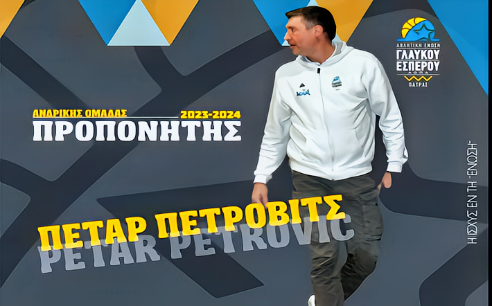 «H Αθλητική Ένωση Γλαύκου – Έσπερου Α.Ο.Π.Α. Πάτρας ανακοινώνει πως νέος προπονητής της Ανδρικής Ομάδας του Συλλόγου θα είναι ο Πέταρ Πέτροβιτς, ενώ ο Νίκος Πολίτης συνεχίζει ως βοηθός προπονητής.