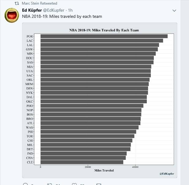 Με αφορμή λοιπόν το πρόγραμμα των αγώνων που ανακοινώθηκε εχθές από τη Λίγκα, αξίζει να ρίξει κανείς μία ματιά στα μίλια που πρόκειται να ταξιδέψουν οι ομάδες. "Πρωταθλητές" είναι οι Πόρτλαντ Τρέιλ Μπλέιζερς οι οποίοι βρίσκονται πρώτοι στη λίστα, ενώ στις επόμενες θέσεις ακολουθούν οι Λος Άντζελες Κλίπερς και Λέικερς καθώς και οι πρωταθλητές Γκόλντεν Στέιτ Ουόριορς.