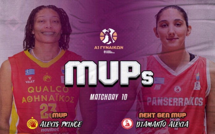 Από το ντέρμπι Αθηναϊκός Qualco – Ολυμπιακός αναδείχθηκε η MVP της 10ης Αγωνιστικής στο πρωτάθλημα της Α1 Γυναικών με την Αλέξις Πρινς να κερδίζει την διάκριση, ενώ MVP Next Gen είναι η Διαμάντω Αλεξιά του Πανσερραϊκού που έφτασε σε double double.