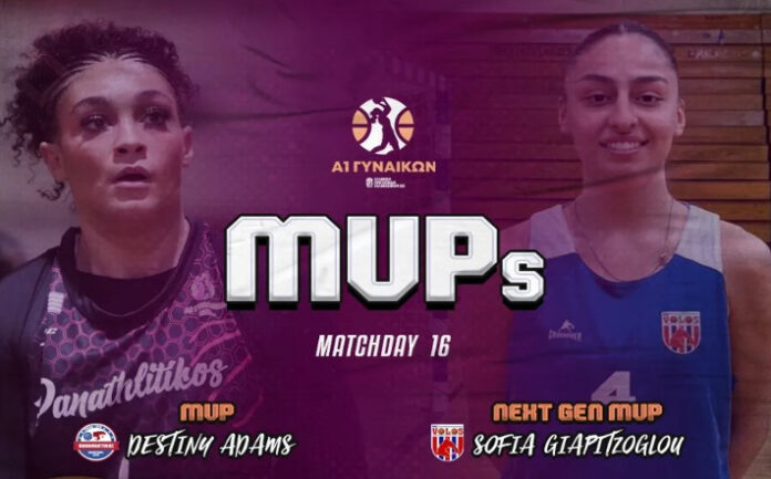 Α1 Γυναικών (16η Αγ.): MVP η σπουδαία Ανταμς του Παναθλητικού, για δεύτερη φορά Next Gen η Γιαπιτζόγλου της Ανόρθωσης Βόλου