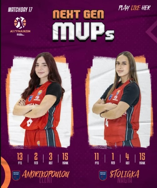 * Να σημειωθεί ότι η διάκριση MVP Next Gen αφορά αθλήτριες που έχουν γεννηθεί από το 2003 και μετά και έχουν δυνατότητα να παίξουν στην Εθνική Ομάδα.