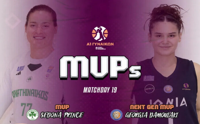 Η 19η Αγωνιστική πρόσφερε σημαντικά παιχνίδια με πολλές αθλήτριες να διακρίνονται, όμως MVP αναδείχθηκε η Σεντόνα Πρινς του Παναθηναϊκού και MVP Next Gen η Γεωργία Δαμουλάκη της Ιωνίας.