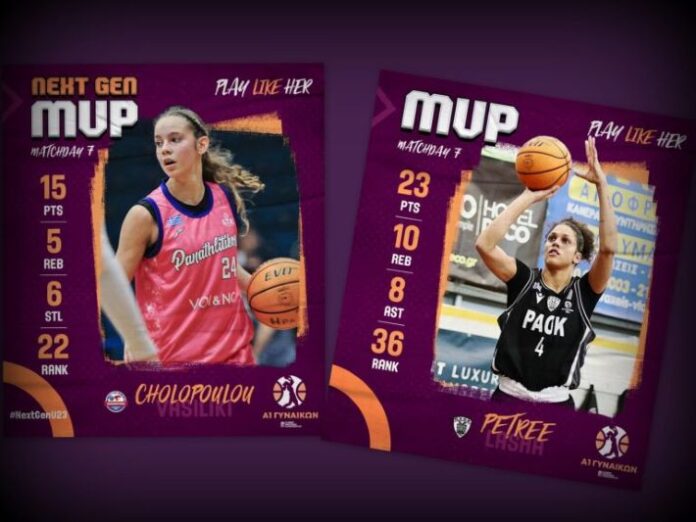Η Λάσα Πίτρι του ΠΑΟΚ στο ντεμπούτο της στο ελληνικό πρωτάθλημα αναδείχθηκε MVP, ενώ η Βασιλική Χωλοπούλου είναι η MVP Next Gen της 7ης Αγωνιστικής.