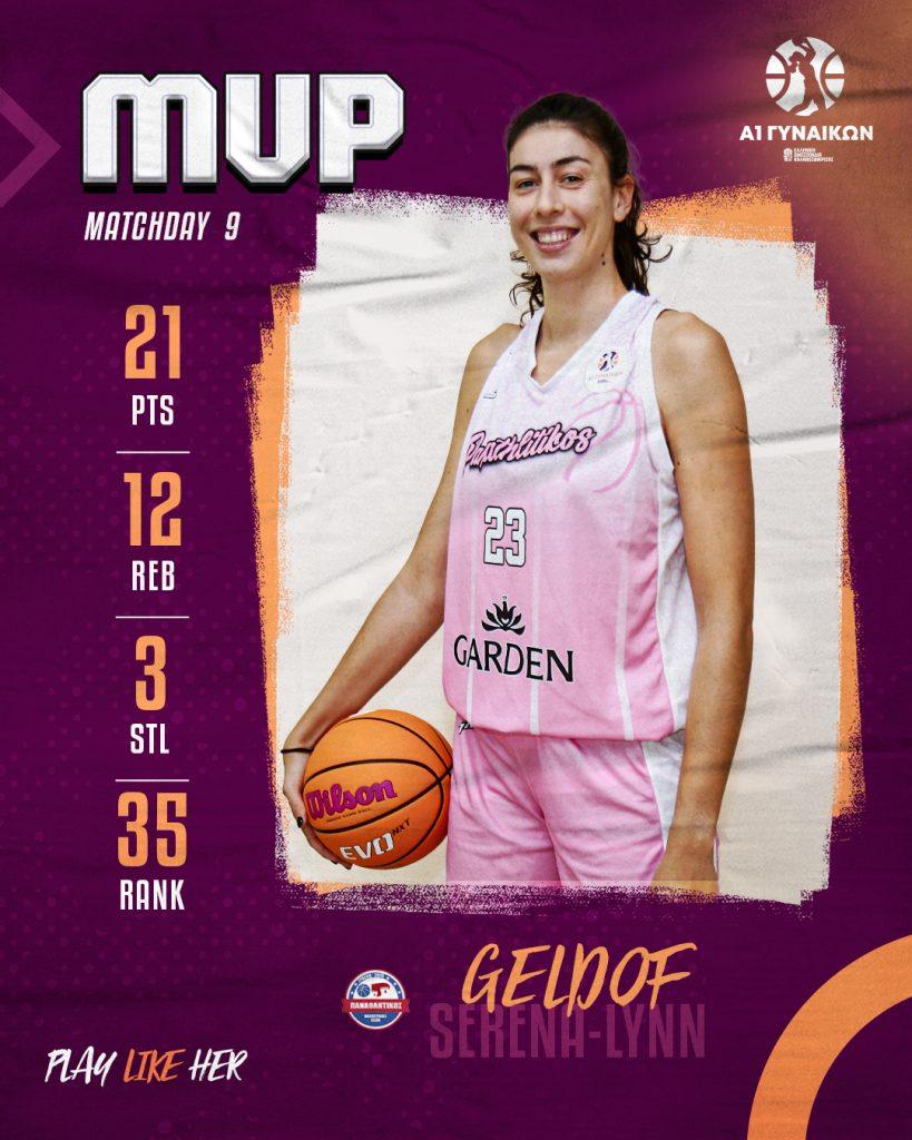 Πλούσιο θέαμα και πολλές συγκινήσεις πρόσφερε στους φιλάθλους η 9η Αγωνιστική του πρωταθλήματος της Α1 Γυναικών με τη Σερένα Γκέλντοφ να αναδεικνύεται MVP και τη Νάγια Στολίγκα να κερδίζει την διάκριση της MVP next gen.